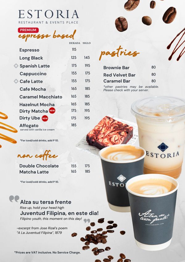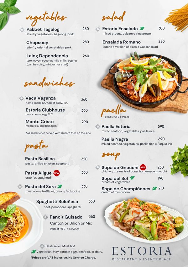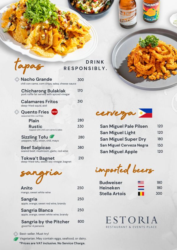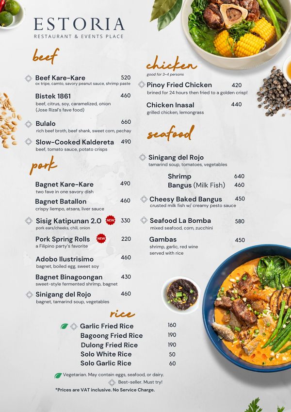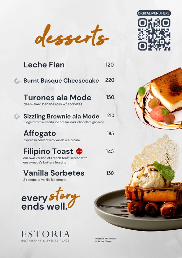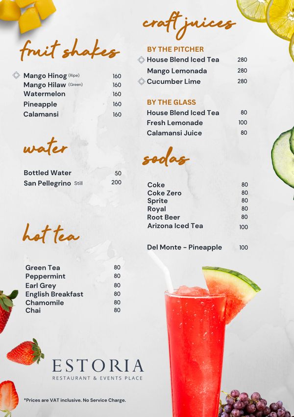 Prices may change.. Prices are inclusive of VAT . No service charge.
