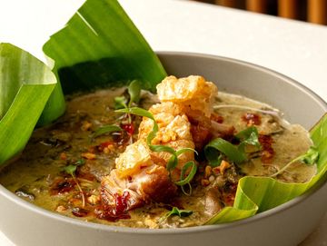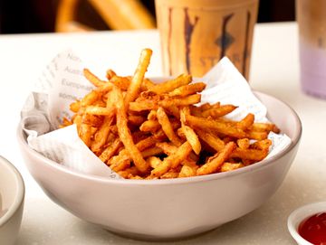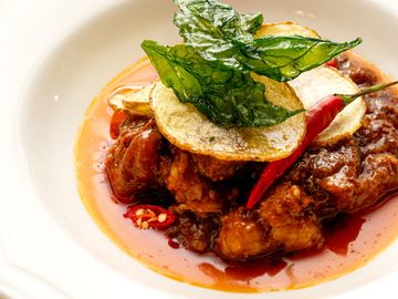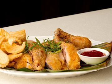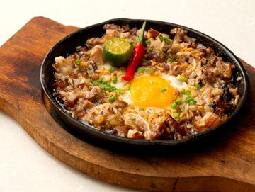 (The Philippine National Dish) bagnet, soy, garlic, fried potatoes, egg
