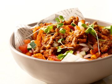 braised-for -hours shortribs, tomato sauce, crispy potato chips